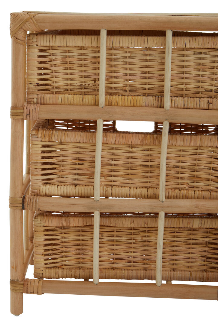 This rattan drawer chest has six woven rattan drawers, that offers both functionality and natural elegance. The open-weave design making it perfect for storing household essentials, linens, or accessories while maintaining an airy and organic aesthetic.