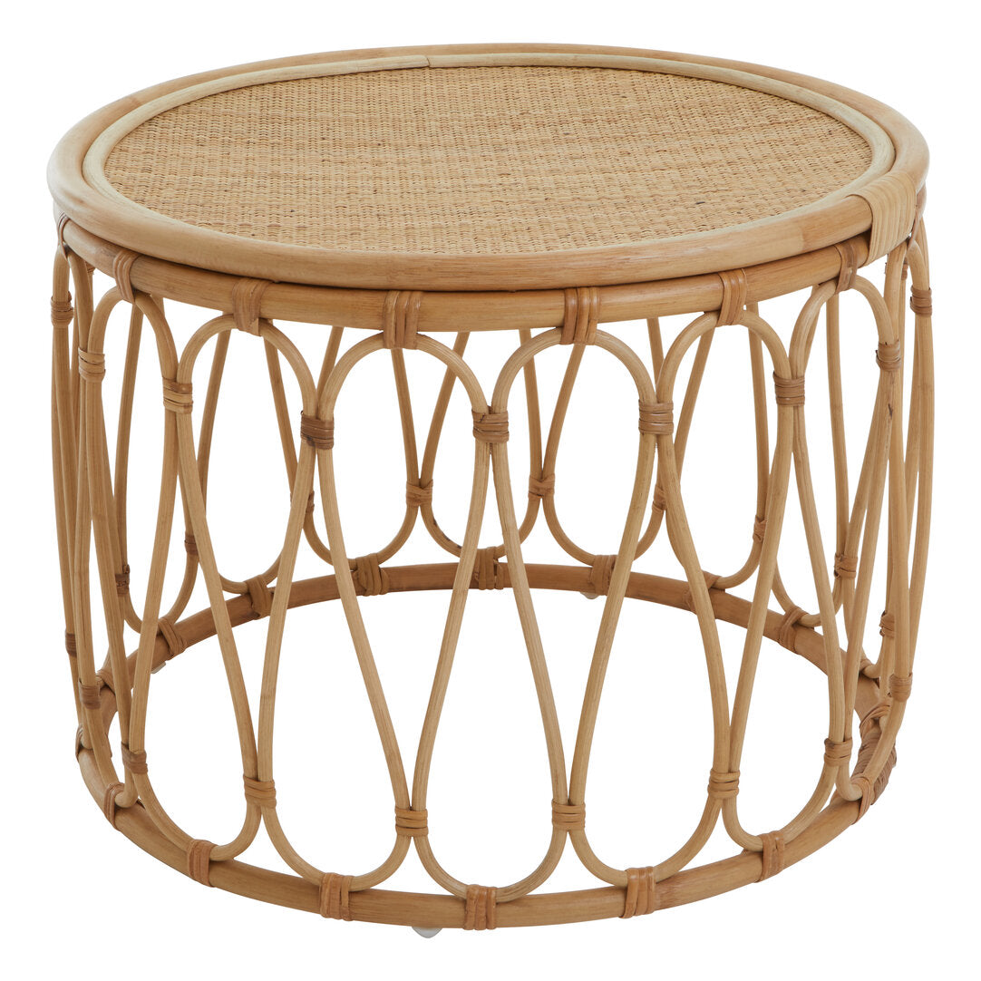 This table is handcrafted from sustainably sourced rattan, this coffee table is sure to impress with its elegant open weave design. Intricate and decorative webbing surrounds the round top and elevates organic minimalism.