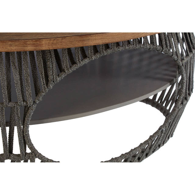 The top of this coffee table is made from smooth grey stone set into a frame of sustainable eucalyptus wood.