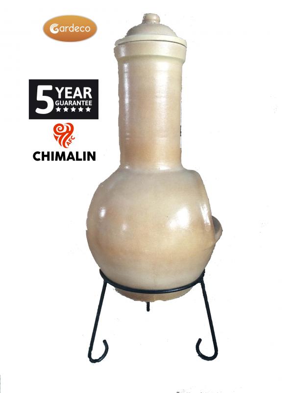 The finish on this chimenea is a glaze with a mottled light brown, almost beige, colour. Chimalin AFC is a new and unique fire clay developed by Gardeco, offering exceptional resistance to fire cracking. This chimenea is guaranteed 5 years against cracking due to thermal shock.